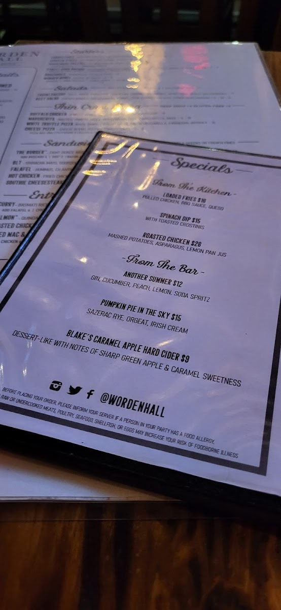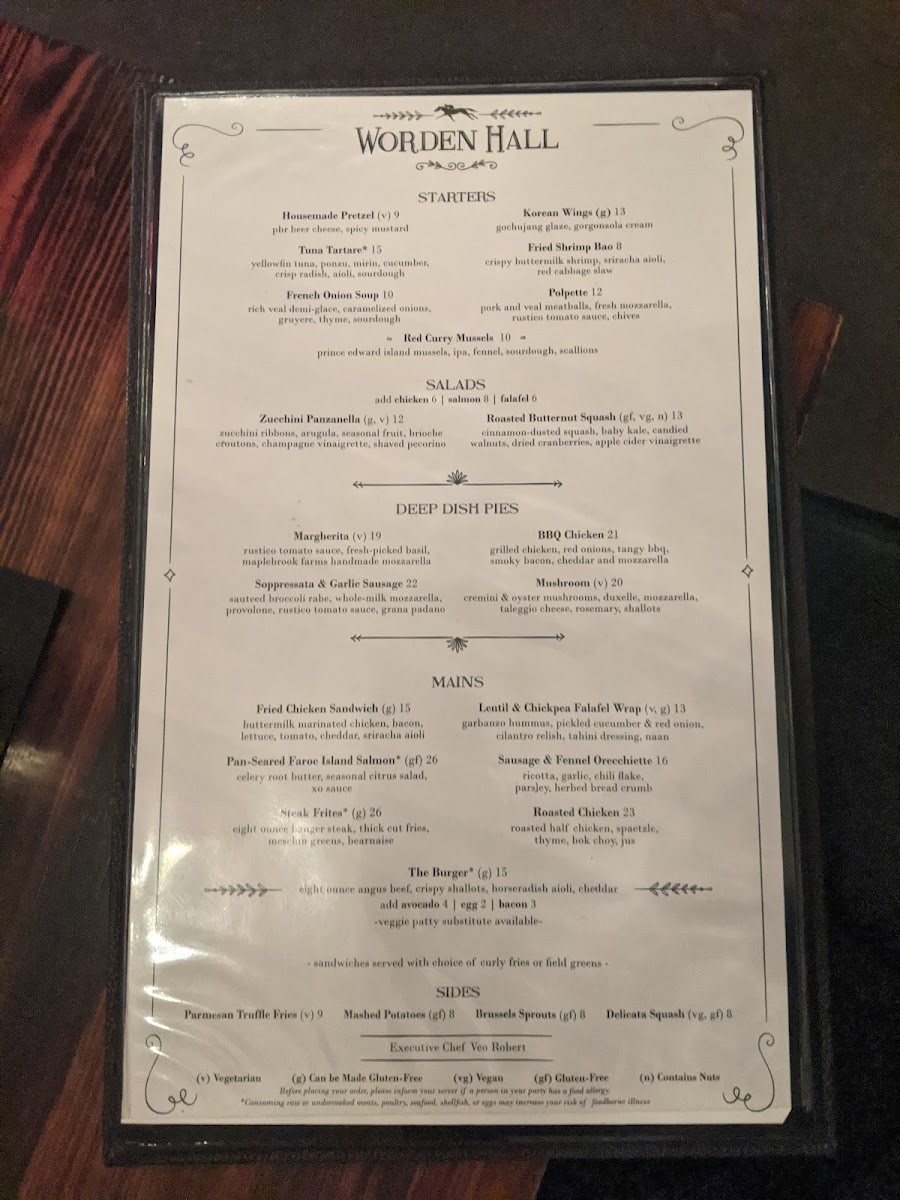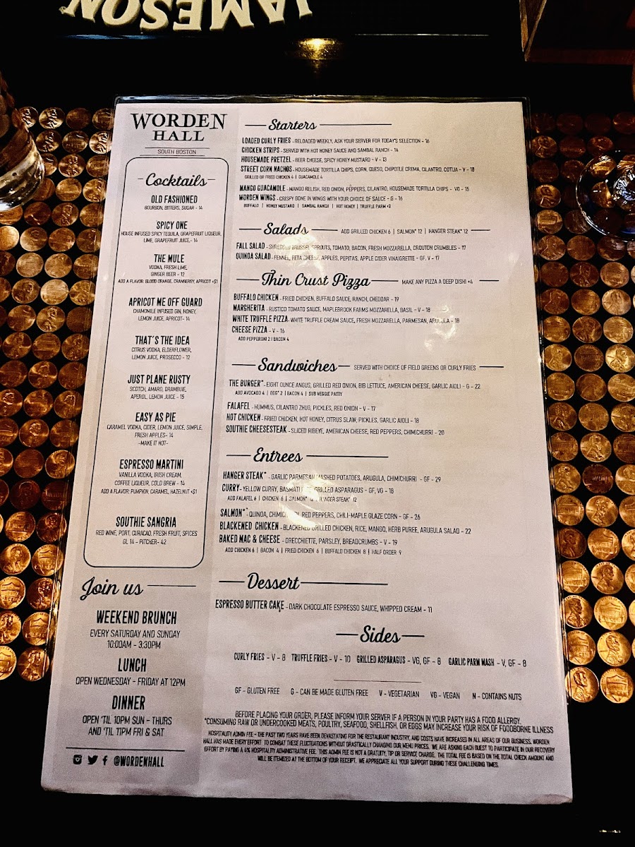 Introducing the menu at Worden Hall, located in the heart of Boston, MA. This inviting venue is celebrated for its vibrant atmosphere and a diverse selection that caters to all tastes. Start your culinary journey with classics like the Classic Caesar Salad or the refreshing Quinoa Salad, each artfully prepared and priced fairly. For those with a craving for something hearty, the Fajita Quesadilla and Worden Wings promise to satisfy. And don’t miss the tantalizing Loaded Fries, which change weekly based on Chef's creativity. Whether you're enjoying a casual lunch or a family dinner, there's something for everyone. Furthermore, the exceptional service fosters a warm environment, making each visit memorable. With highlights like their renowned brunch featuring chicken and waffles and the delightful banana bread pudding, Worden Hall ensures a dining experience that blends quality, diversity, and enjoyment.
